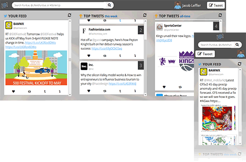 This experiment with social media APIs combines the functionality of Twitter with the concept of Yik Yak. Users interact with their feed in the traditional ways, but can also upvote and downvote tweets to influence the global "most popular" tweets. These most popular lists are unique to our app, but reflect data collected from every user globally.